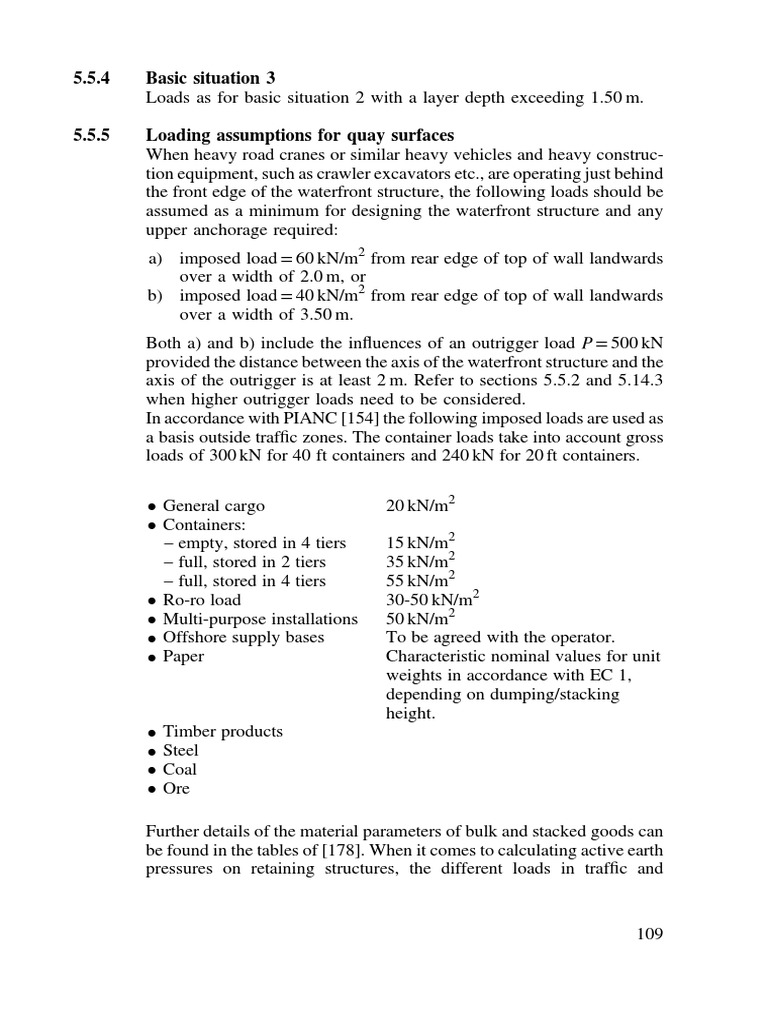 5.5.5 Loading assumptions for quay surfaces