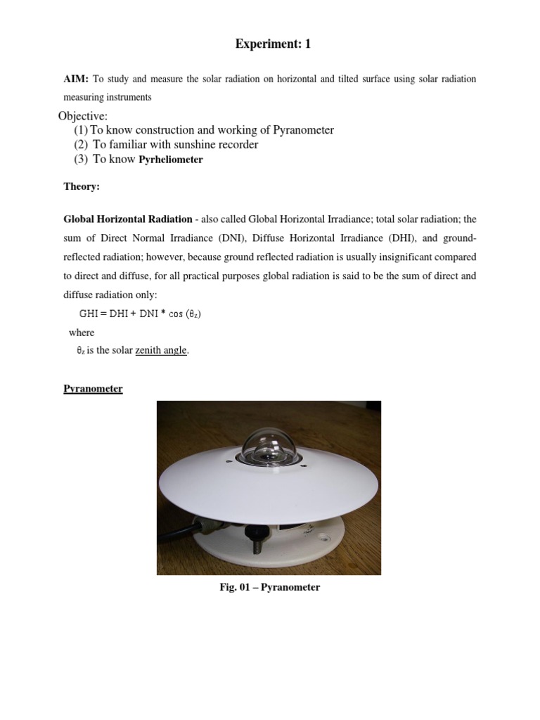 (1) To know construction and working of Pyranometer