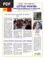 Linggo ng Wika OCTOBER 2nd Quarterly Examinatio n PTC United Nations Celebratio n Semestral Break February -Teachers Day -English Assessmen t Test (EAT) -NEAT Grade 1-5 -NSAT-First Year -RetreatGrade 6 March -Picture Taking (Graduates) -Final Examination -Intramurals -Recognition Day -Graduation Day NOVEMBER Teachers Day Clubs Festival December -NEATGrade 6 -PATPreparator y -Christmas Party -Christmas Vacation January -Resume of Classes -3rd Quarterly Examinatio n -PTC -Retreat Preparatory