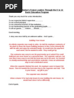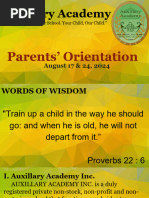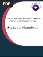 3. Forms can be secured via phone. Forms will be brought home by the student and filled up by the parents to be returned the next day. The office will confirm the appointment by phone. 4. Appointment with the teacher can only be scheduled after classes; that is 4:00PM onwards up to 6:00PM XIII. COVENANT AGREEMENT PARENTS CONFORME I/We have read all the contents of this Parent/student handbook. I/We recognize the significance of the policies and regulations for the optimum development of my/our child/children _____________________________________________________ _____ I/We affix my/our signature/s below as a sign of my/our commitment to the schools partner for this endeavor. _______________________________ Parents Signature over printed name ____________________________________ Childs Signature over printed name