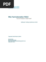 What is Automation ? Automated software testing means automating the existing process of manual software testing. This implies that a structured manual software testing process already exists. Automation is not an island unto itself. It requires a solid testing infrastructure and a thoughtful software testing life cycle, both supported and valued by the management. Automation is usually the fantasy of software testers, who are most of the time under pressure to do more testing in less time. Performing manual testing especially those labour-intensive tasks is usually unappealing thus automation seems to be the solution to make their job more simple and helps them to meet the unrealistic schedules. There is still a common myth in the testing community that test automation tools alone can bring solutions to our software testing problems. Many people think that test automation is obviously the right thing and do not bother to state what they hope to get. This includes answering questions like why, what, when and how to automate. Contrary to what test tool vendors would like us to believe automated testing is an expensive process. Studies show that it can take between 3 to 10 times longer to develop automated Test Suite than to create and execute manual test cases. Costs of test automation include personnel to support test automation for the long term, dedicated test environment as well as the costs for the purchase, development and maintenance of tools. The benefits of test automation only come from running the automated tests every subsequent release and after carefully making a cost/benefit analysis beforehand, that is after making an informed decision about what is the best for your situation. Test automation can add a lot of complexity and cost to a test team's effort. In addition problems like including unrealistic expectations, poor testing practices, a false sense of security, maintenance costs, and other technical and organisational problems might arise. But it can also provide some valuable assistance if its done by the right people, in the right environment and done where it makes sense to do so. Test automation has its limitations. It does not replace manual testing, which will find more defects than automated testing. As a matter of fact automated testing is an addition to your testing process and does not enable you to downsize your testing department.