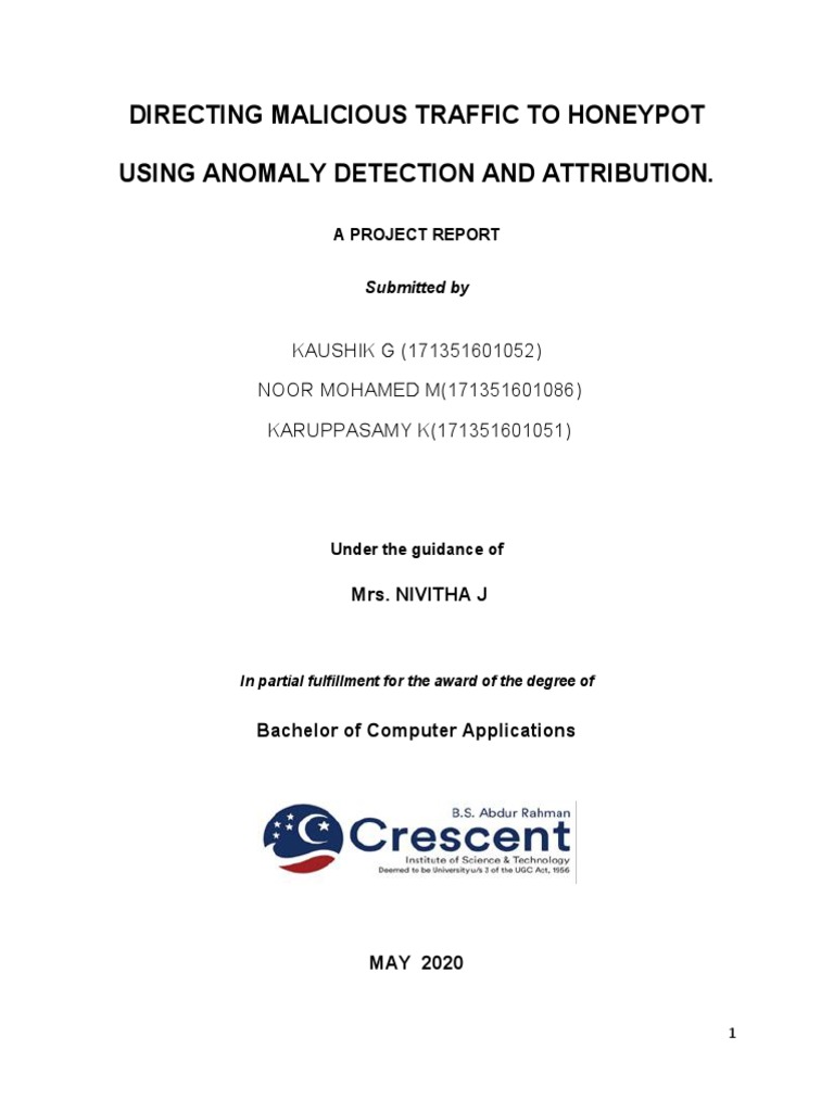 Certified that this project report “DIRECTING MALICIOUS TRAFFIC TO