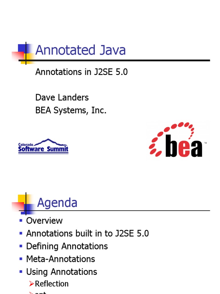 Annotations in J2SE 5.0 Dave Landers BEA Systems, Inc.