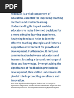 Feedback is a vital component of education, essential for improving teaching methods and student learning. Understanding its impact enables educators to make informed decisions for a more effective learning experi