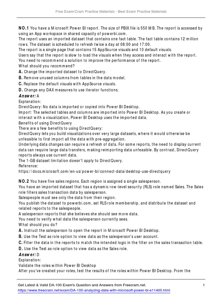 NO.1 You have a Microsoft Power BI report. The size of PBIX file is 550 MB. The report is accessed by