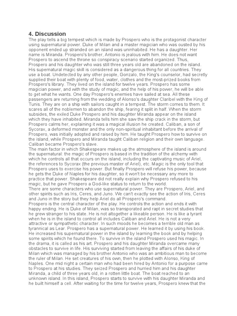 tyrannical as Lear. Prospero has a supernatural power. He learned it by using his book.