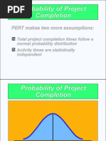PERT activity: the actual performance of a task which consumes time and requires resources (such as labour, materials, space, machinery). It can be understood as representing the time, effort, and resources required to move from one event to another. A PERT activity cannot be performed until the predecessor event has occurred. Optimistic time (O): the minimum possible time required to accomplish a task, assuming everything proceeds better than is normally expected Pessimistic time (P): the maximum possible time required to accomplish a task, assuming everything goes wrong (but excluding major catastrophes). Most likely time (M): the best estimate of the time required to accomplish a task, assuming everything proceeds as normal. Expected time (TE): the best estimate of the time required to accomplish a task, assuming everything proceeds as normal (the implication being that the expected time is the average time the task would require if the task were repeated on a number of occasions over an extended period of time). TE = (O + 4M + P) 6 Float or Slack is the amount of time that a task in a project network can be delayed without causing a delay - Subsequent tasks (free float) or Project Completion (total float) Critical Path: the longest possible continuous pathway taken from the initial event to the terminal event. It determines the total calendar time required for the project; and, therefore, any time delays along the critical path will delay the reaching of the terminal event by at least the same amount. Critical Activity: An activity that has total float equal to zero. Activity with zero float does not mean it is on the critical path. Lead time: the time by which a predecessor event must be completed in order to allow sufficient time for the activities that must elapse before a specific PERT event reaches completion. Lag time: the earliest time by which a successor event can follow a specific PERT event. Slack: the slack of an event is a measure of the excess time and resources available in achieving this event. Positive slack would indicate ahead of schedule; negative slack would indicate behind schedule; and zero slack would indicate on schedule. Fast tracking: performing more critical activities in parallel Crashing critical path: Shortening duration of critical activities