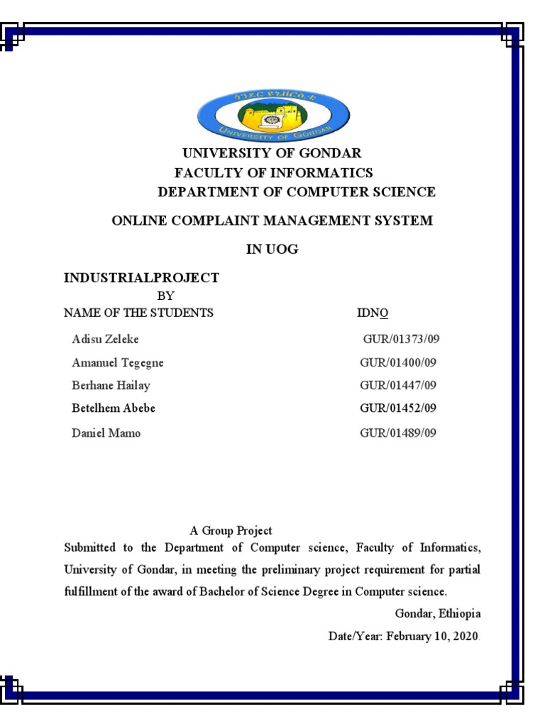 This Group Project entitled Online Complaint Management System in the University Of Gondar