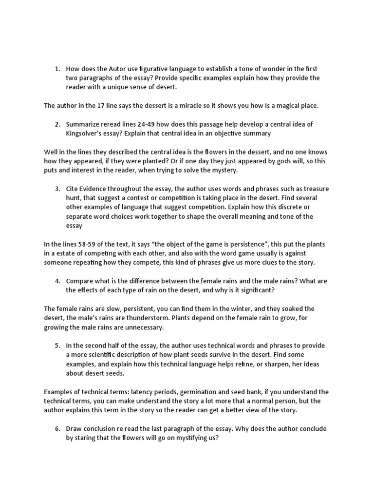 Kingsolver’s essay? Explain that central idea in an objective summary