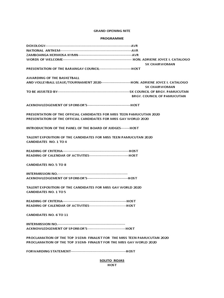 PRESENTATION OF THE BARANGAY COUNCIL--------------------------HOST