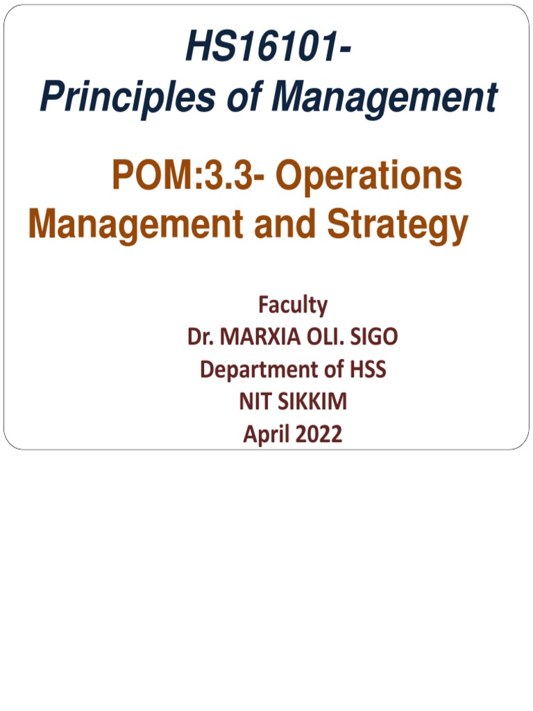 ⚫ “Operations strategy is the total pattern of decisions which shape the
