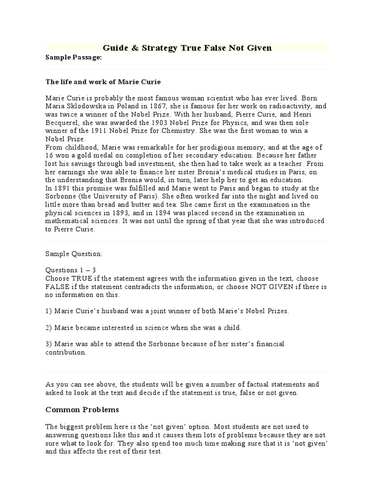 ‘false’ or ‘not given’ you have at least one answer wrong.