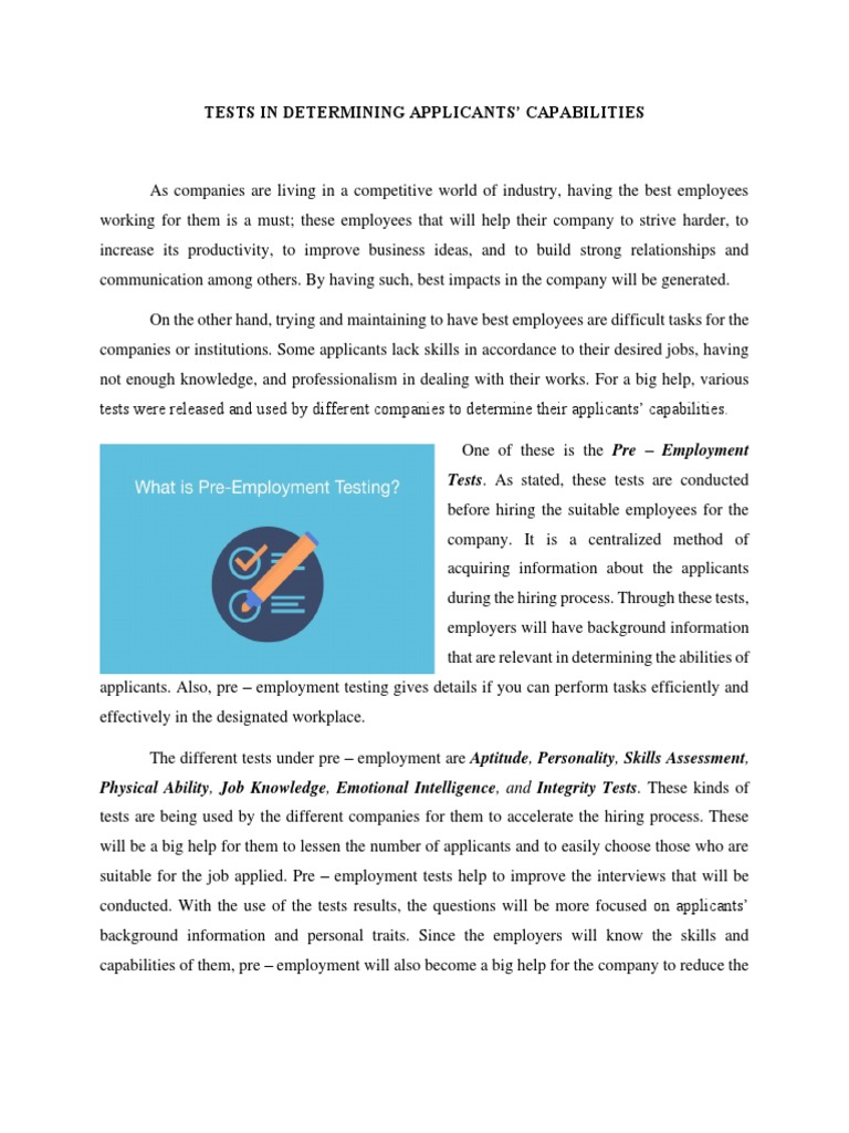 applicants. Also, pre – employment testing gives details if you can perform tasks efficiently and