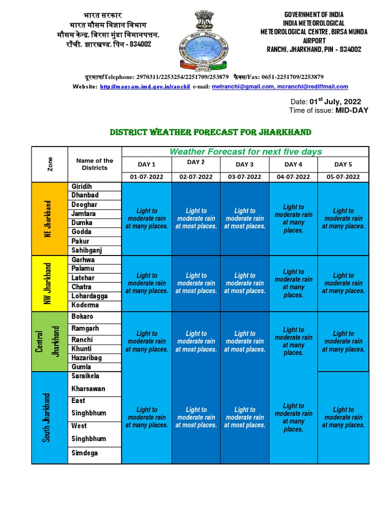 DISTRICT Weather FORECAST FOR JHARKHAND