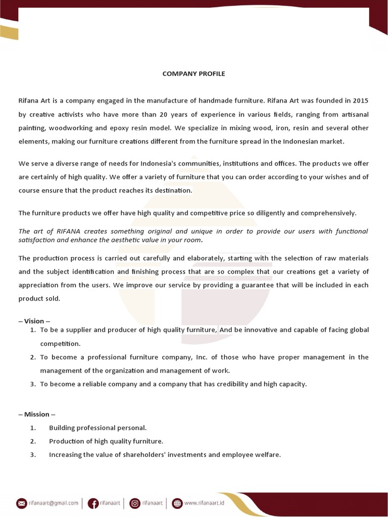 Rifana Art is a company engaged in the manufacture of handmade furniture. Rifana Art was founded in 2015