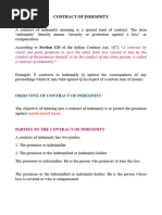 Thus, contract of indemnity is a special contract in which one party to a contract (i.e the