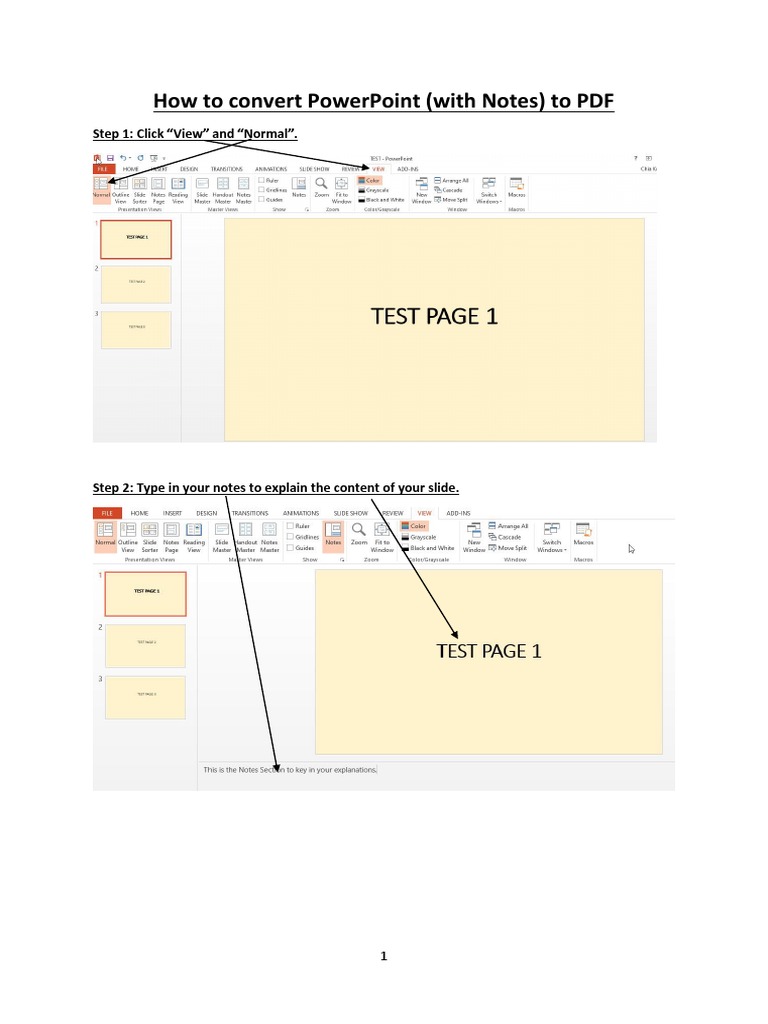 Step 9 : Check that the generated PDF document has both slides and accompanying notes.