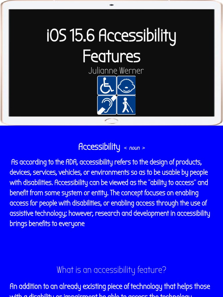 with disabilities. Accessibility can be viewed as the "ability to access" and