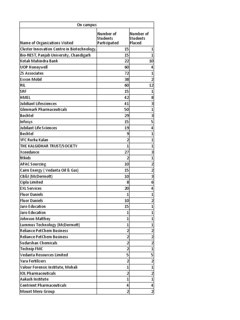 Name of Organizations Visited Participated Placed