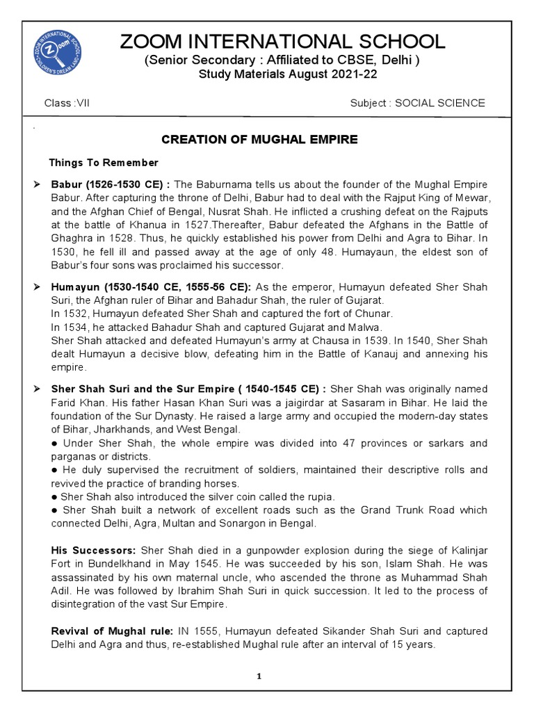 Sher Shah Suri and the Sur Empire ( 1540-1545 CE) : Sher Shah was originally named