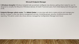 5.Windows Autopilot: Windows Autopilot sets up and pre-configures new devices, getting them ready for use. It's