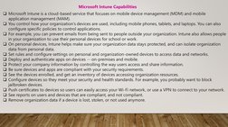 i Remove organization data if a device is lost, stolen, or not used anymore.Microsoft Intune Capabilities