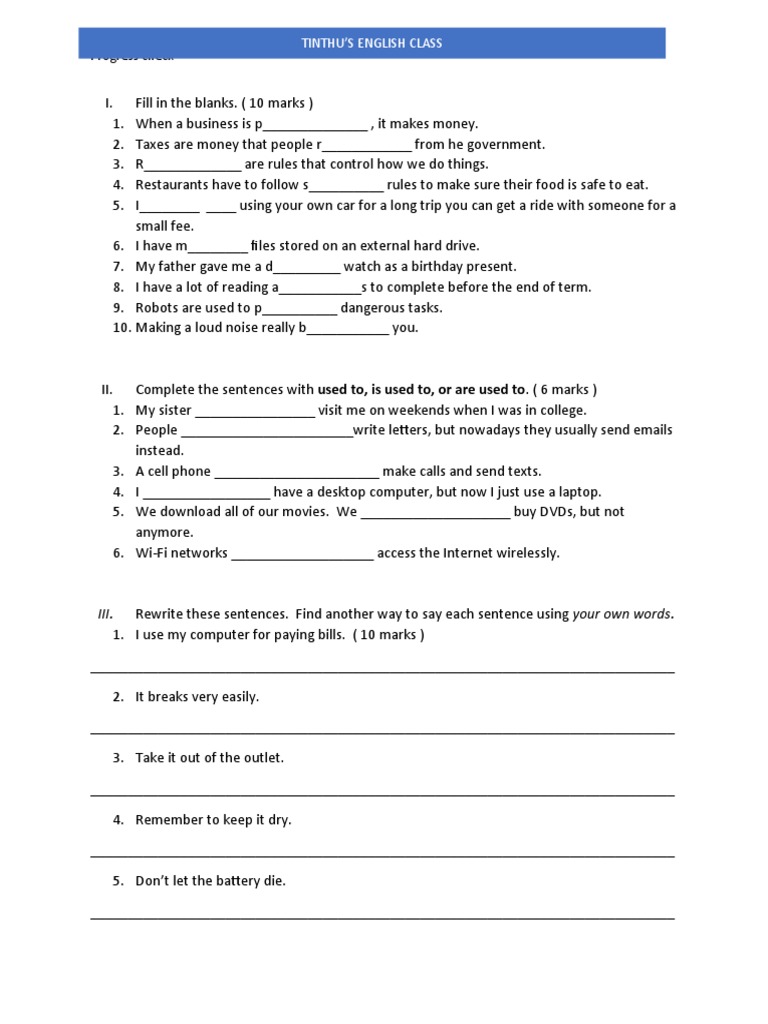 I. Fill in the blanks. ( 10 marks )
