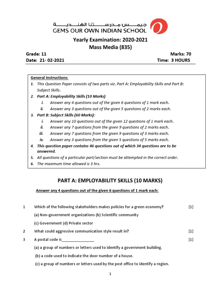 2. Part A: Employability Skills (10 Marks)