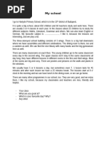 I go to a secondary school in Dorog. I go to school on my foot. It takes me about 10