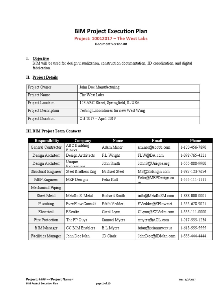 BIM Project Execution Plan page 1 of 10