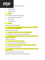 Q8. We can achieve complete statement coverage but still miss bugs because: A. The failure occurs only if you reach a statement taking the TRUE branch of an IF statement, and you got to the statement with a test that passed through the FALSE branch. B. The failure depends on the program's inability to handle specific data values, rather than on the program's flow of control. C. Both A and B D. We are not required to test code that customers are unlikely to execute. Q9. Who is responsible for conducting test readiness review? a. Test manager b. Test engineer c. both A & B d. Project Manager Q10. What if the project isn't big enough to justify extensive testing? a) Use risk based analysis to find out which areas need to be tested b) Use automation tool for testing c) a and b d) None of the above Q11. What are the key features to be concentrated upon when doing a testing forworld wide web sites a) Interaction between html pages b) Performance on the client side c) Security aspects d) All of the above Q12. What can be done if requirements are changing continuously? a) Work with the project's stakeholders early on to understand howrequirements might change so that alternate test plans and strategiescan be worked out in advance, if possible. b) Negotiate to allow only easily-implemented new requirements into theproject, while moving more difficult new requirements into futureversions of the application c) Both a and b d) None of the above Q13. The selection of test cases for regression testing a) Requires knowledge on the bug fixes and how it affect the system b) Includes the area of frequent defects c) Includes the area which has undergone many/recent code changes d) All of the above Q14. Measurement dysfunction is a problem because: A. Even though the numbers you look at appear better, to achieve these numbers, people are doing other aspects of their work much less well. B. We don't know how to measure a variable (our measurement is dysfunctional) and so