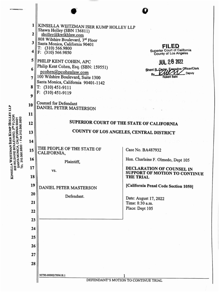 Shawn Holley's declaration asking Judge Olmedo to delay trial to January 2023