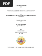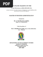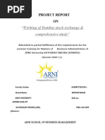 The management of the stock Exchange apprehended that the smaller regionals t o c k e x c h a n g e s w o u l d n o t b e a b l e t o m e e t t h e c h a l l e n g e s i m p o s e d b y expansion of bigger stock exchanges like NSE and BSE and might end up losingt h e i r b u s i n e s s t o V S A T c o u n t e r s o f t h e b i g g e r s t o c k e x c h a n g e s . I n o r d e r t o prepare for such an eventuality, stock exchanges set up a broking armed in thename of LSE Securities Ltd (a subsidiary company of stock exchange) in January2000 and built infrastructure and IT based sophisticated systems to enable itsmembers and investors to trade on NSE and BSE through the subsidiary route. LSEAL HAS:-OWN BUILDING LSEAL has its own six stories ultra modern building at Feroze Gandhi market at Ludhiana. It started its operation on 16th Aug, 1983. OWN BULLETIN LESAL is continuously publishing LSEAL Bulletin at the interval of quarter. It isalso publishing LSE annual report which provides information to the variousmembers and investors of stock exchanges. SCREEN BASED TRADING It was started at LSE on Nov. 18, 1996. The requisite software is developed byCMC Ltd. This screen Based Trading is based on VECTOR (Versatile Engine for Centralized Trading and on line reporting System) this system displays fundswith respect of opening prices of the stock exchanges as well as the last tradedprices. ON LINE TRADING THROUGH VSAT LSEAL has chalked out an ambitious program to expand online trading throughV - S A T to untie other than Ludhiana and plans to take the trading facility t o doorstep of investors in this year. The Board of Directors of LSE have approvedthe plan for expansion of online trading through VSAT with the object of broadbase business opportunities to the investor and members, the exchange has setup 30 trading terminals at remote sites and union territory of Chandigarh. Tradingthrough V-SAT has been smoothly conducted in October 1999. SETTLEMENT GUARANTEE FUND It provides guarantee to all genuine based trading system of the stock exchangeand was implemented a settlement guarantee fund with effect from 6th April,1998. SETTLEMENT AND CLEARING There is T+2 settlement cycle prevailing in the market. Members are given scripwise delivery notes. The members are required to deposit scrips sold by them tothe clearing house on the second working day following the day of transaction.Purchasing members are required to make the payment against the delivery alsoon aforesaid day. DEPOSITORY SYSTEM
