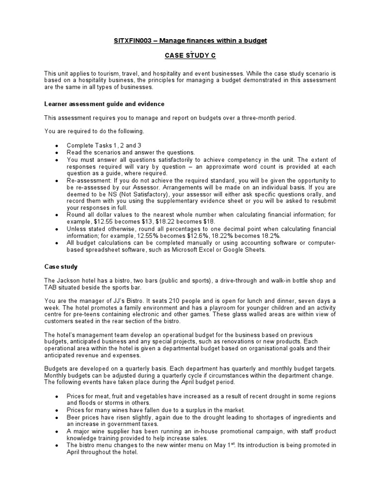 based on a hospitality business, the principles for managing a budget demonstrated in this assessment