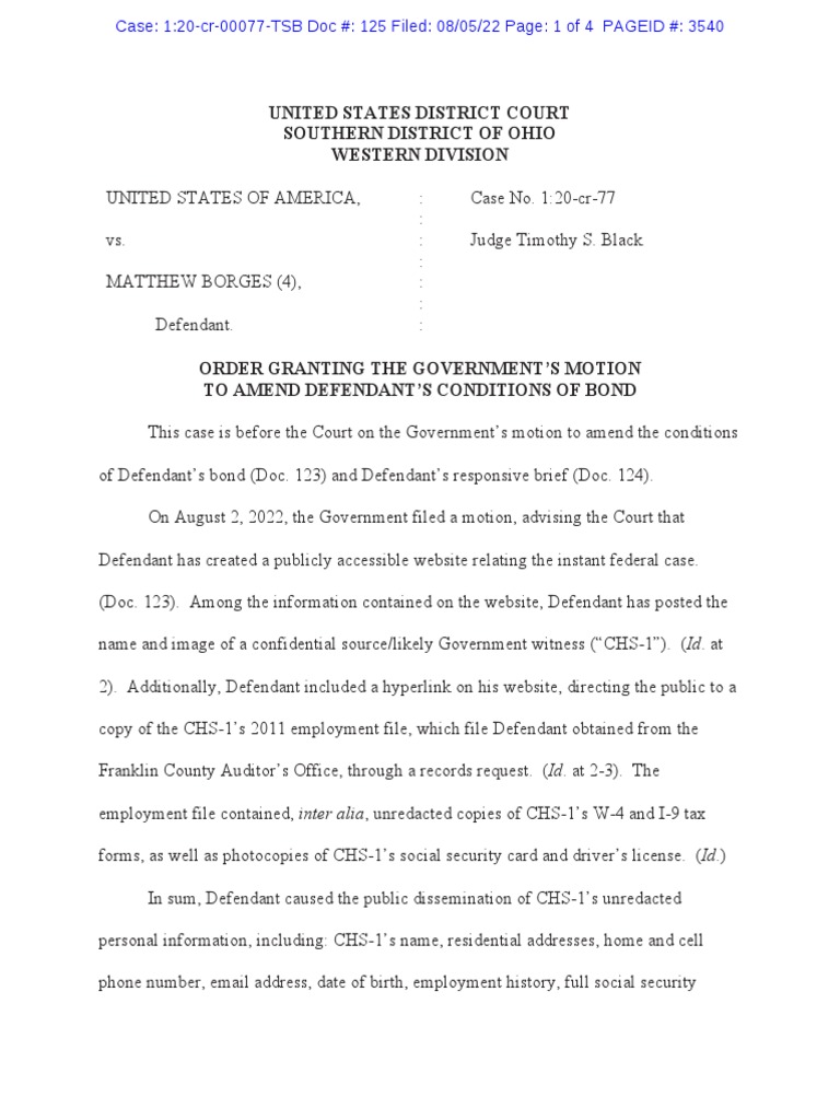 Case: 1:20-cr-00077-TSB Doc #: 125 Filed: 08/05/22 Page: 1 of 4 PAGEID #: 3540