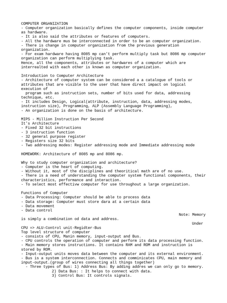 - All the hardware mus be interconnected in order to be an computer organization.