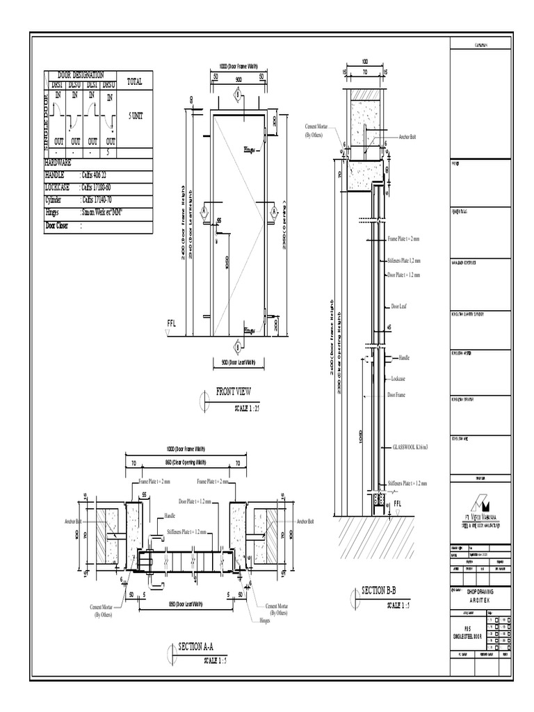 890 (Door Leaf Width) Cement Mortar SCALE 1 : 5