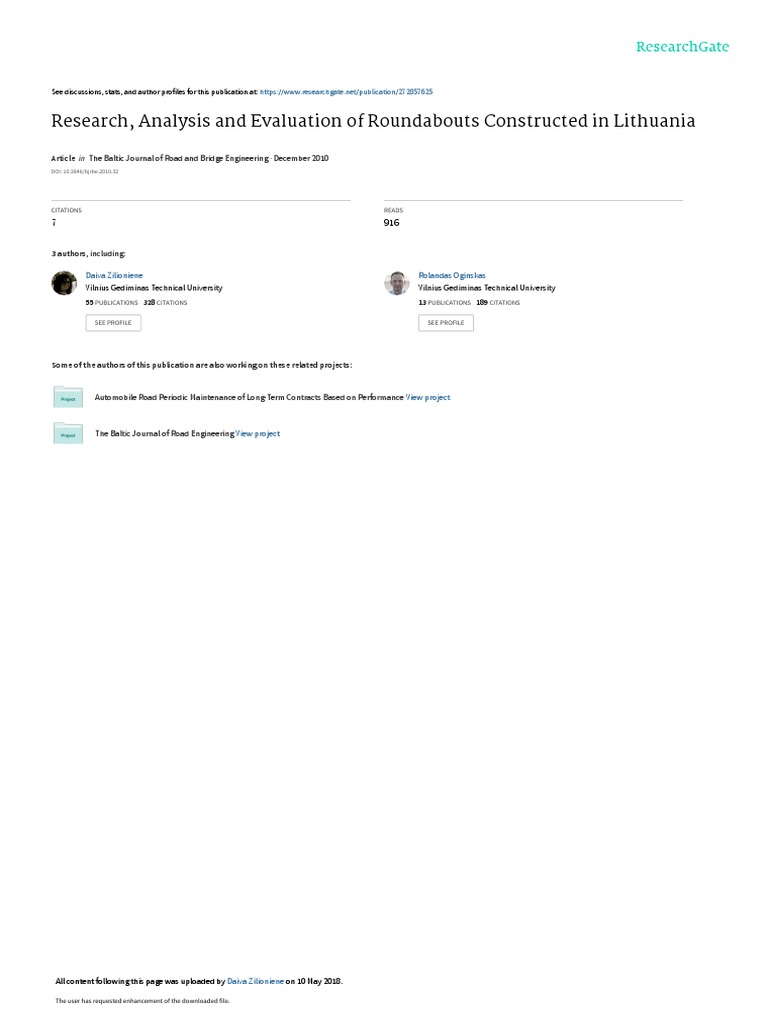 242 D. Žilionienė et al. Research, Analysis and Evaluation of Roundabouts Constructed in Lithuania