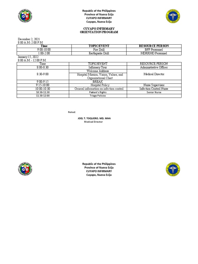 8:30-9:00 Hospital Mission, Vision, Values, and Medical Director