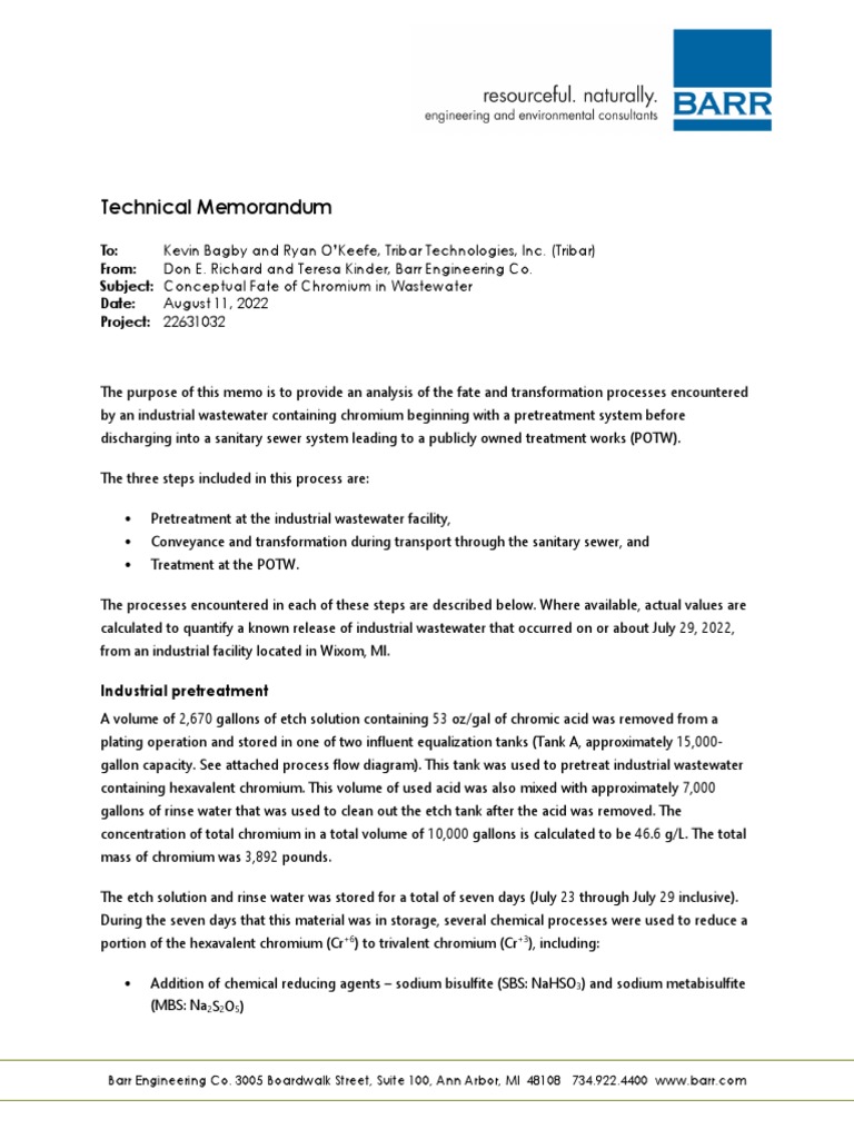Barr Engineering Co. 3005 Boardwalk Street, Suite 100, Ann Arbor, MI 48108 734.922.4400 www.barr.com