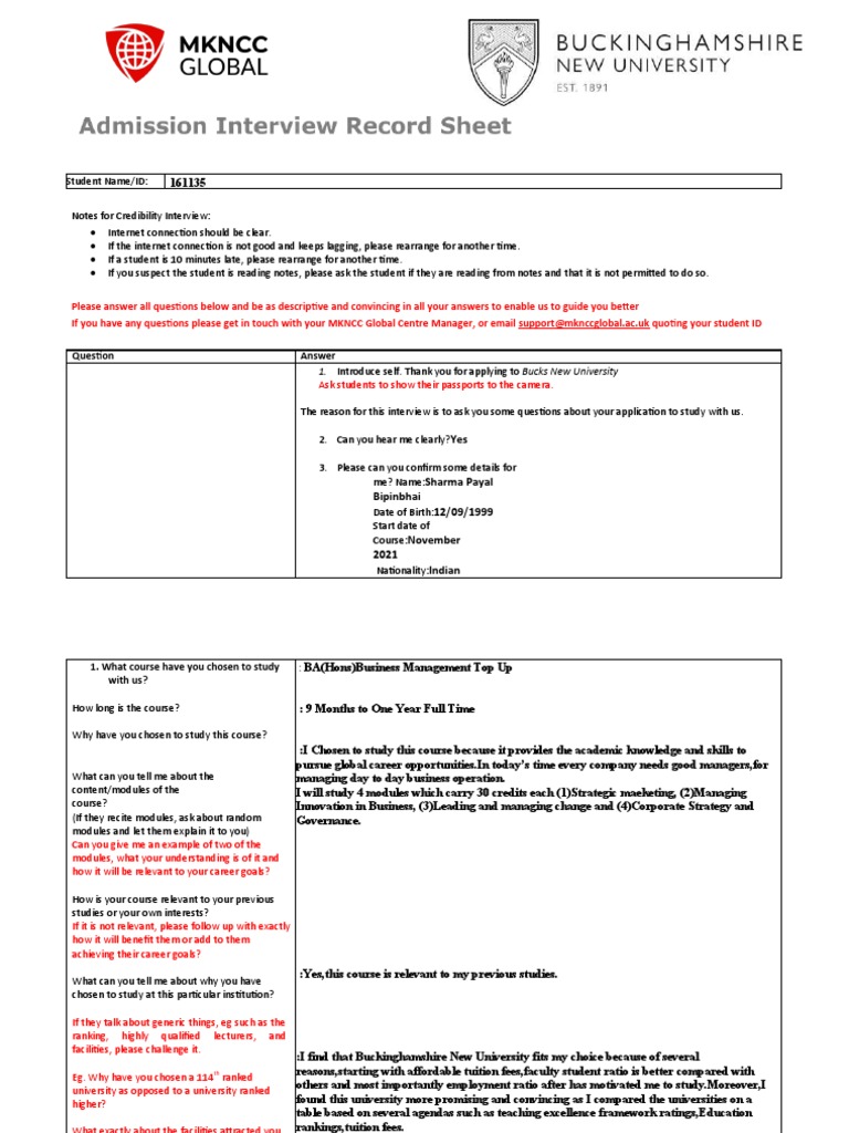 1. What course have you chosen to study : BA(Hons)Business Management Top Up