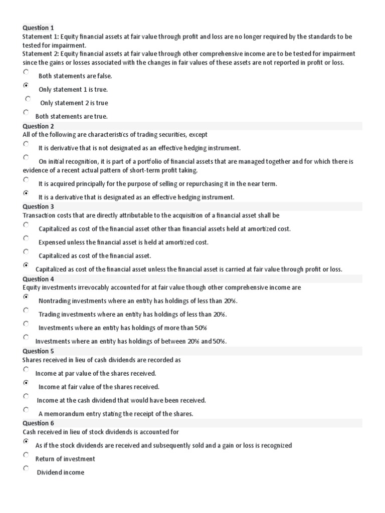 Statement 1: Equity financial assets at fair value through profit and loss are no longer required by the standards to be