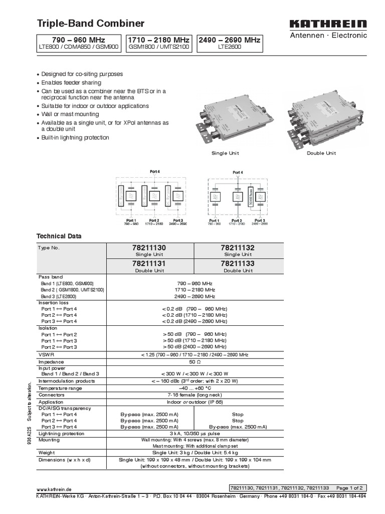 www.kathrein.de 78211130, 78211131, 78211132, 78211133 Page 1 of 2