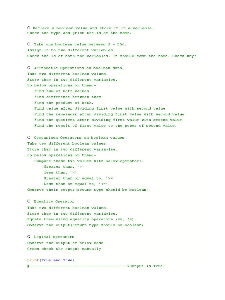 Q. Comparison Operators on boolean values