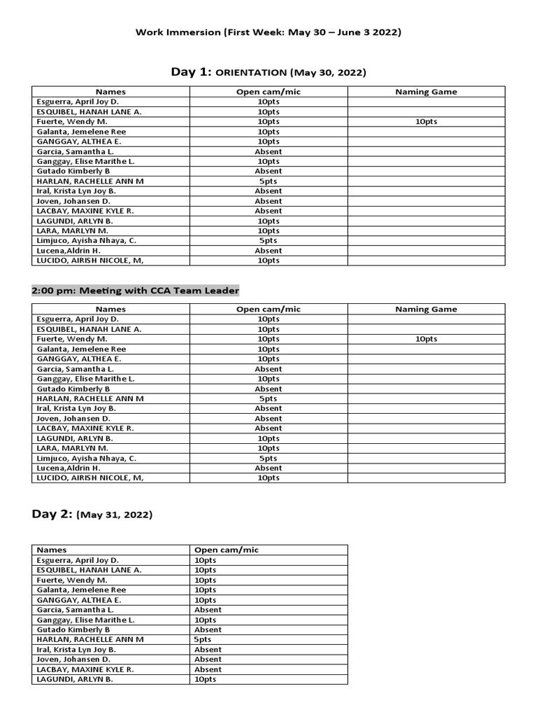 Work Immersion (First Week: May 30 – June 3 2022)