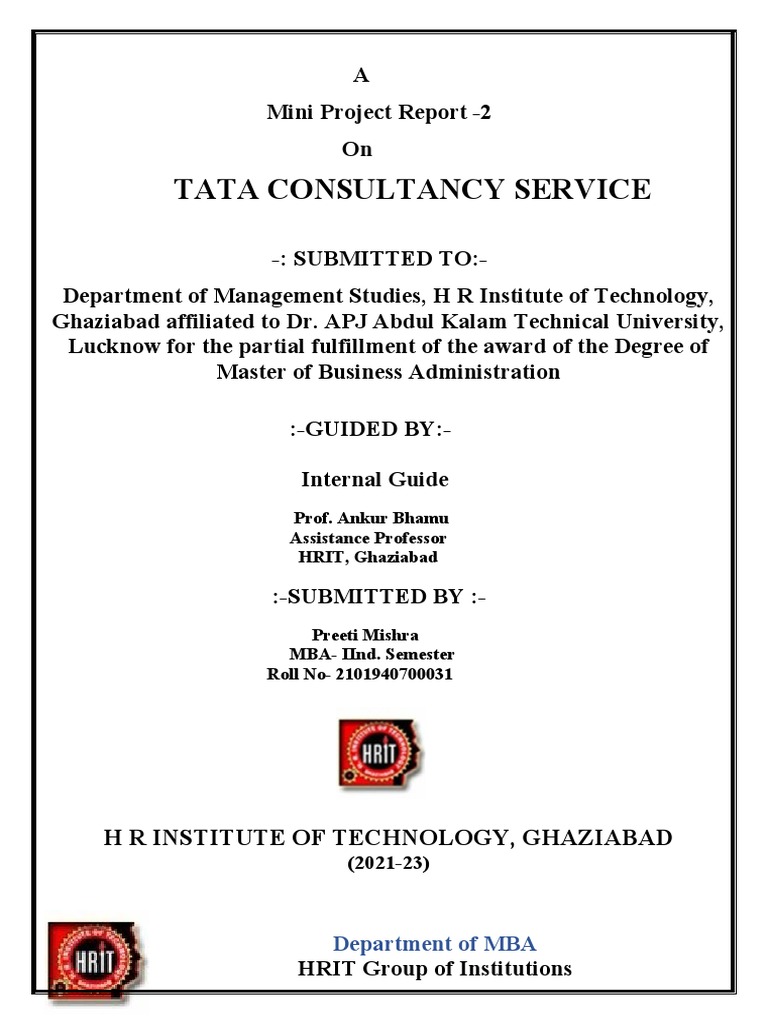 (ii) This Mini Project Report -2 Titled TATA CONSULTANCY SERVICE is based on my own