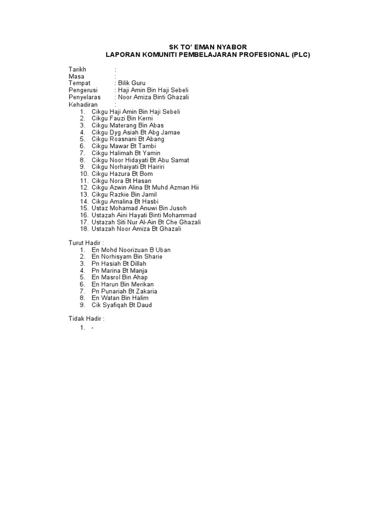 LAPORAN KOMUNITI PEMBELAJARAN PROFESIONAL (PLC)