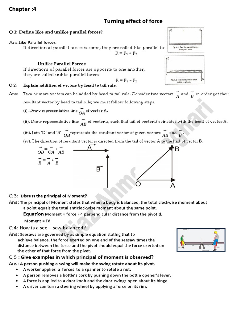 Q 11: (a) Discuss torque or moment of a force in detail.