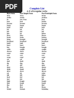 INFINITIVE PAST TENSE PAST PARTICIPLE