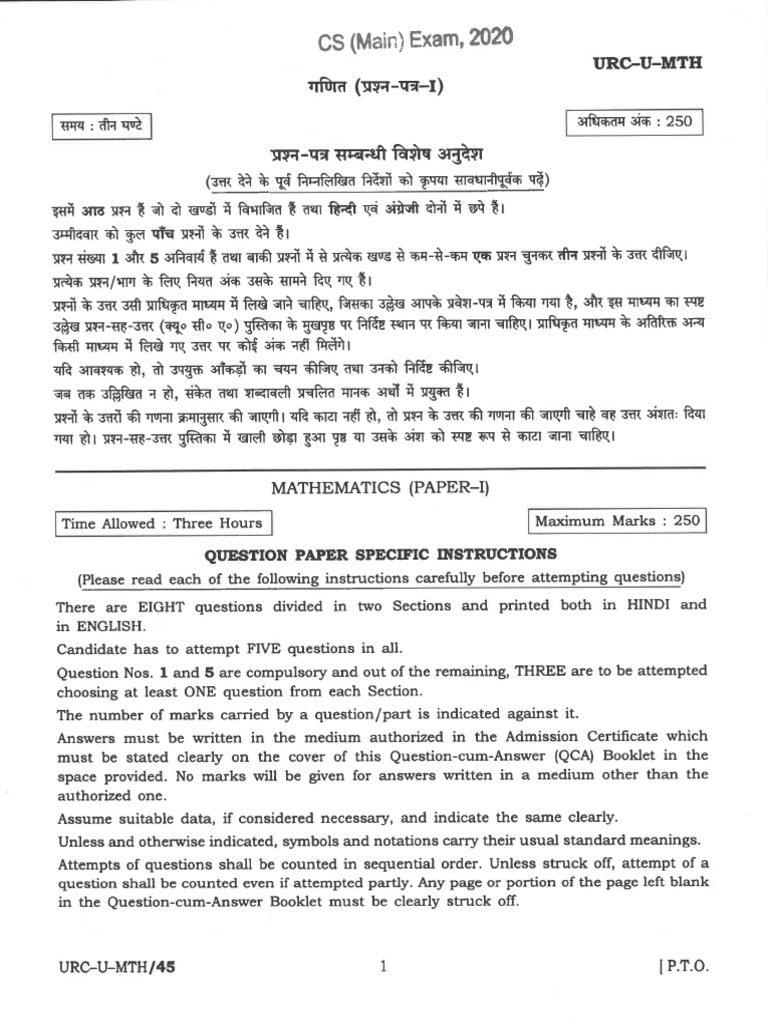 QUESTION PAPER SPECIFIC INSTRUCTIONS